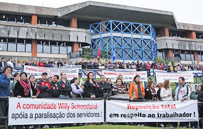 Após a reunião os servidores saíram em passeata pelas ruas do centro da cidade e convocaram toda a comunidade joinvilense a apoiar a causa dos trabalhadores municipais.
